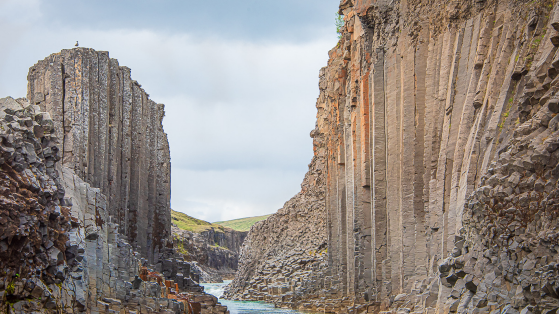Stuðlagil Canyon: Kaňon s bazaltovými útvary.