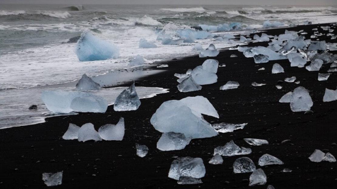 Diamond Beach: Ledové kry na pláži.
