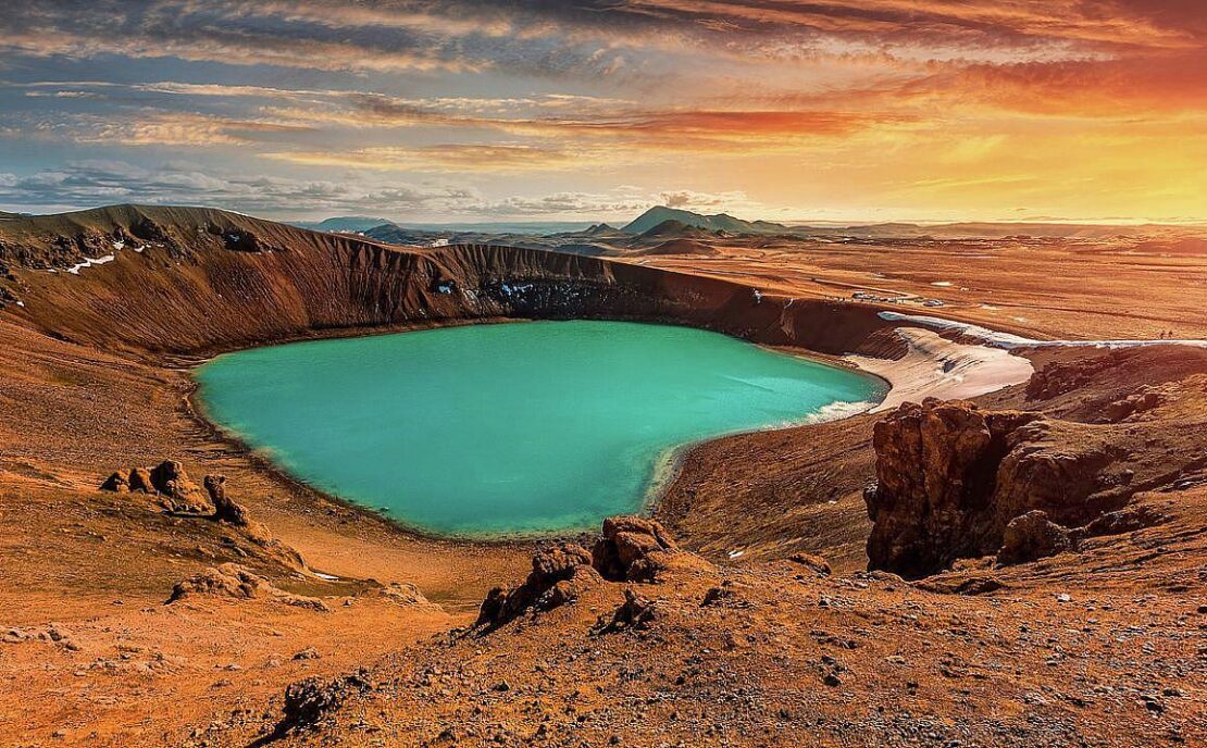Krafla: Vulkán a kráter.