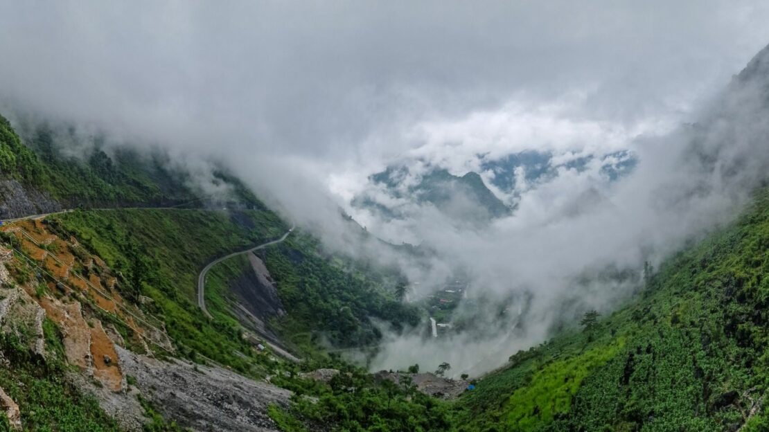 Cesta pokračuje přes Ma Pi Leng Pass, jedno z nejúchvatnějších míst v severním Vietnamu. Tento průsmyk nabízí dechberoucí výhledy na hluboké údolí a prudké skály padající k řece Nho Que.